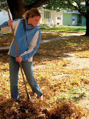 A Freeman (S.D.) Academy student rakes leaves  during a community service day