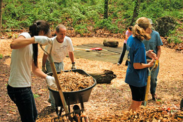 The high school curriculum includes formalized experiential learning in a one-week session called E-term. Participating students connect with the Harrisonburg community in activities such as spreading mulch and cleaning for those who need help. High school students also spend a Community Service Day each spring helping local community organizations prepare for summer camps, clean up trash and provide other much-needed help.