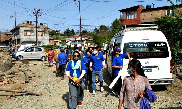 Photo: Youth from the Binay Church Council visit and distribute food to affected neighborhoods in Kathmandu.