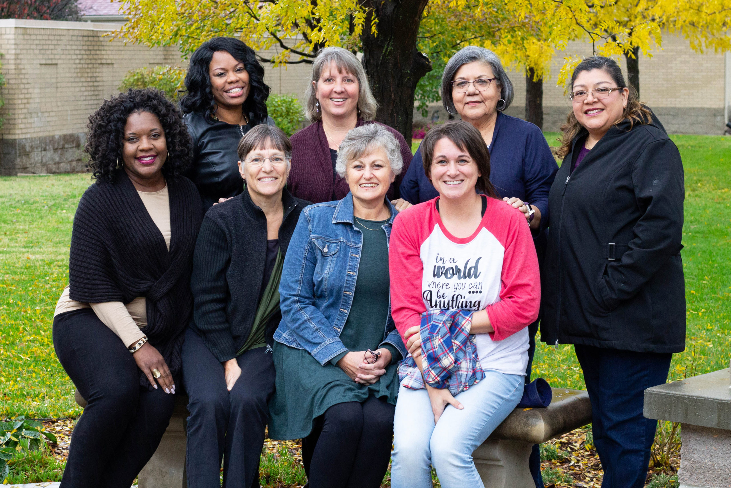 Photo: In front, from left, Alicia Manning, Sandra Drescher-Lehman, Twila Lehman and Jill Baker; in back, from left, Hyacinth Stevens, Marta Castilla, Graciela Tijerina and Hildalejandra Pellecer. Photo by Rashell Kaufman.