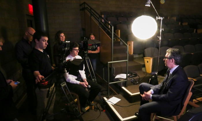 A team of Goshen (Indiana) College students, alums and faculty working with FiveCore Media had the opportunity to film an interview on May 14 with a radio hero this spring — NPR’s Ira Glass, host and producer of the popular radio show “This American Life.”