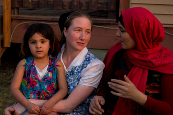 Reyad and Najwa look very, very scared. They are beautiful. They stand waiting for us, and it seems that it takes all their strength just to be there. Their children huddle close to the adults’ legs, with big, innocent, luminous eyes. What had they gone through? We smile welcoming smiles, yet I feel like crying. We can’t speak to them to reassure them, to tell them how supportive we are, how excited. Paul reaches for the interpreter’s help. Reyad quickly expresses his fear about us not knowing their language. Our interpreter is able to reassure Reyad that we had a computer app that would translate Arabic to English. It suddenly became a lifeline. And then Reyad was able to smile.