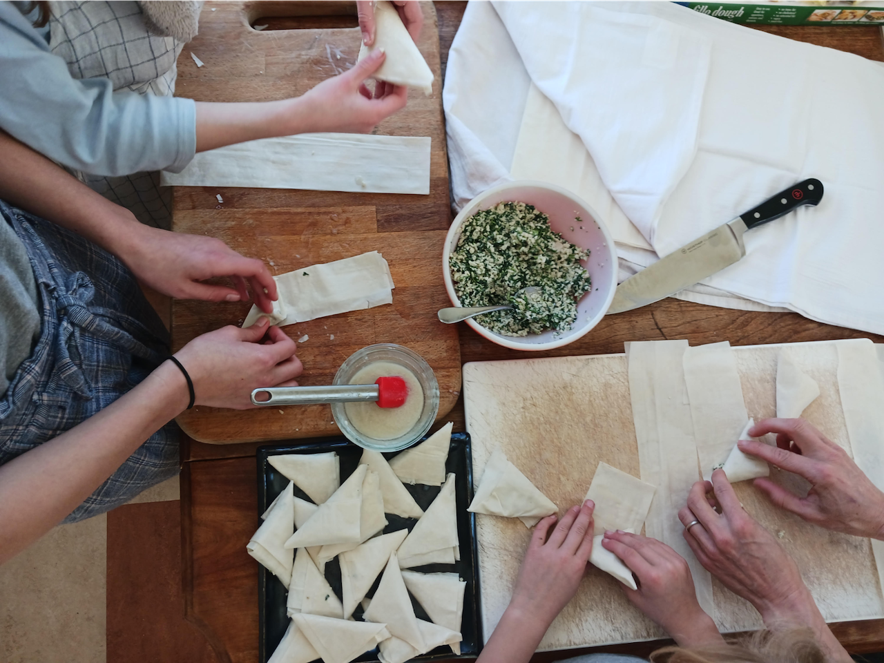 Heather Wolfe has an Advent tradition with her family of folding food and faith together into spanakopita “prayer packages.” — Heather Wolfe