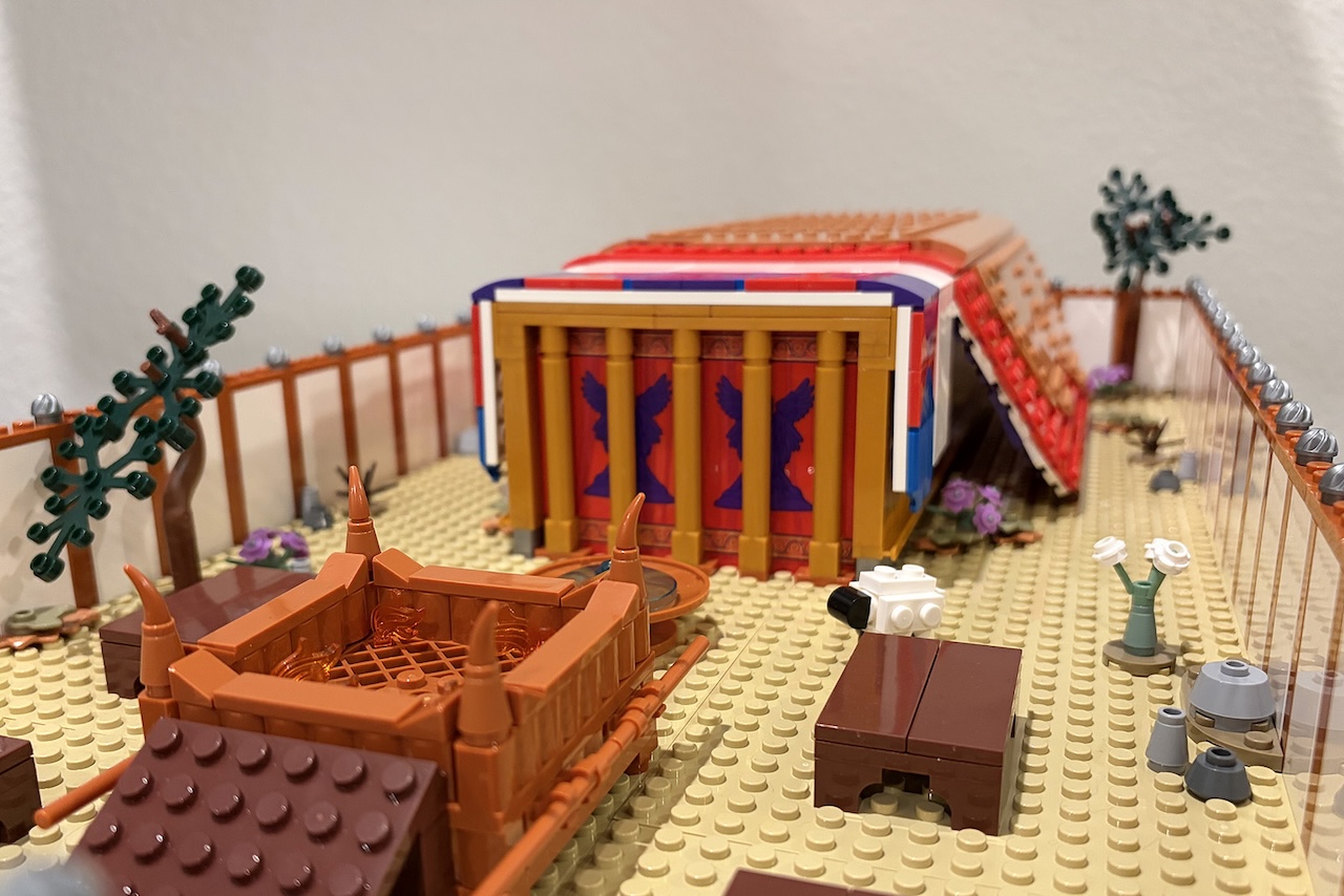 “In the original design, the walls of the tabernacle were just wood (colored),” Gareth, 21, explained. “I later found in the Bible that the walls were overlaid with gold, so we switched the bricks to a shiny metallic gold color. That was one of the biggest changes that we made.”