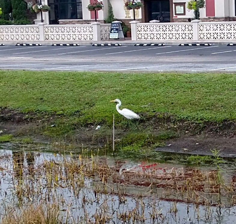 I purposefully walked over to the Orlando Convention Center every morning from my hotel about a half mile away. I welcomed the exercise and the chance to breathe unfiltered air, no matter how hot. There was a ditch beside the sidewalk filled with litter, but also containing its own miniature ecosystem. There was an egret standing nobly beside the ditch each day, without anxiety or fear, undaunted by the climate, oblivious to human aims and objectives being pursued nearby, feeling completely at home and feeling totally loved.