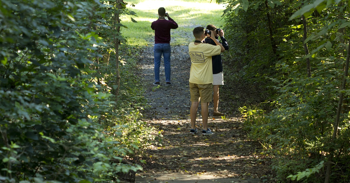 Photo: Student photographers focus on nature’s beauty in Park Woods near Eastern Mennonite School. Photo by Andrew Gascho.