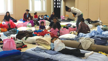 Hundreds of women and children unexpectedly discharged from immigrant detention facilities needed shelter on Dec. 3, and it didn’t seem right to suggest they find a stable out back. As air mattresses and space heaters filled the fellowship hall, Sunday school classrooms, hallways and sanctuary, Pastor John Garland joked that the congregation replaced its fake nativity scene with an actual one.