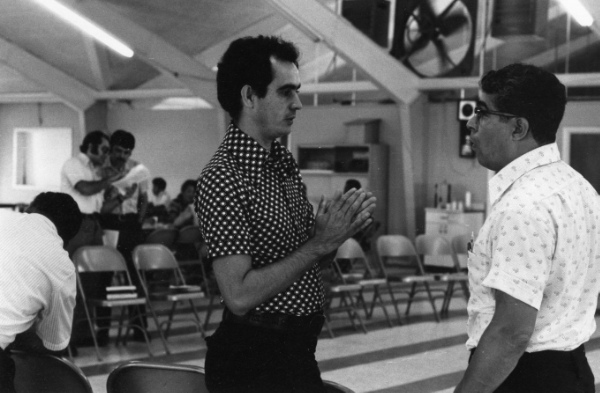 Pictured here: José Ortiz and Juan (John) Ventura. Ortiz, a Mennonite pastor in both Puerto Rico and the United States, served as the associate secretary of Latin Concerns and a leader of the Concilio Nacional de Iglesias Menonitas Hispanas from 1974-1982. He focused on evangelism and church growth, and led efforts to ensure that Hispanic Mennonite churches were led by Latino pastors. Under his leadership, Latino/a membership in the Mennonite church in the United States and Canada grew and a Spanish language publication, Ecos Menonitas, flourished.
