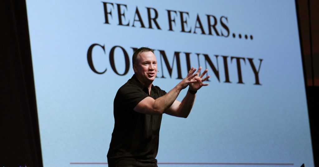 Dustin Galyon, head basketball coach at Hesston (Kansas) College, speaks at morning worship