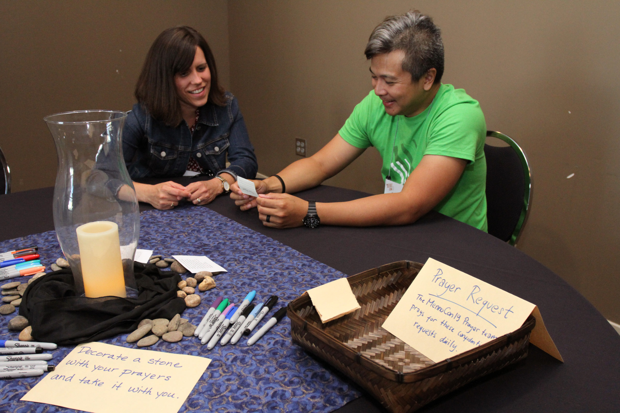 Prayer tent leaders Sarah Ann Bixler and Hendy Steven Matahelemual