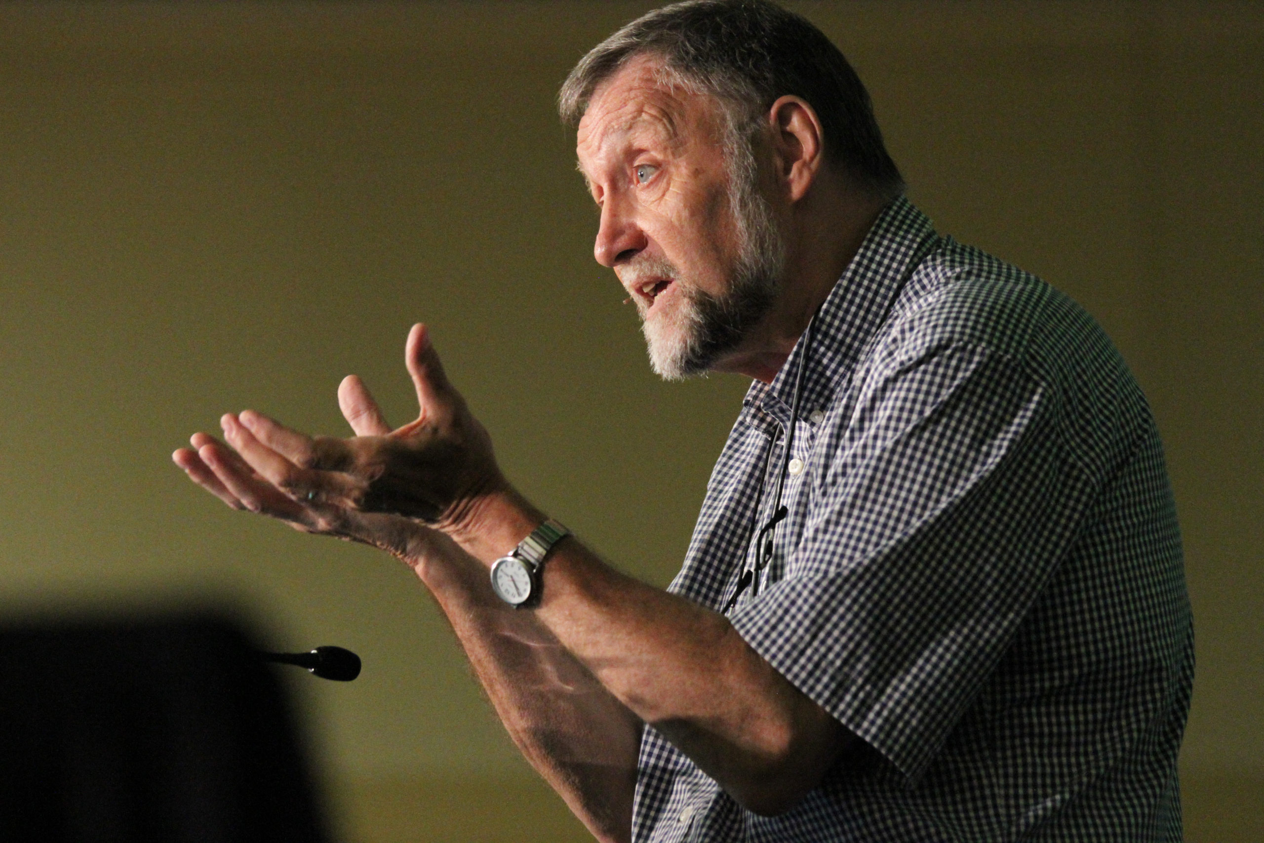 Tom Yoder Neufeld leads Bible study for delegates