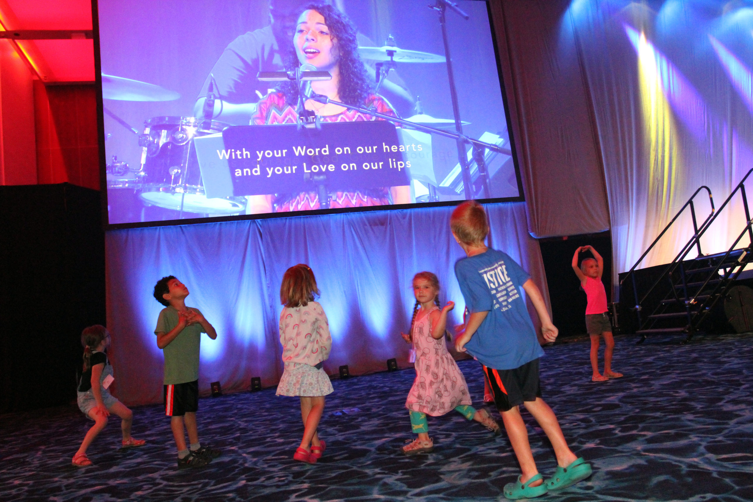 Children dance during morning worship