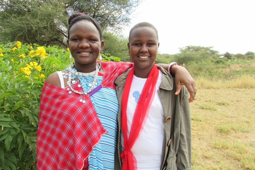 Photo: Ana Laizer, right, who is standing with Paulina Sumayani, director of Tanzania Education and Micro Business Opportunity (TEMBO)Trust, participated in TEMBO’s Sara and Juma program at her school. Because of the program, Lazier decided she didn’t want to undergo female genital mutilation or to be married at a young age. MCC photo/Tiffanee Wright