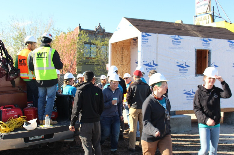 Photo: Over 100 individuals came to help with a tiny house village build on May 20 in Denver. The village will provide shelter for currently homeless individuals and is an interfaith partnership between the individuals themselves, local Denver nonprofits, Colorado Mennonite churches, Everence and Mennonite Disaster Services. Photo provided.