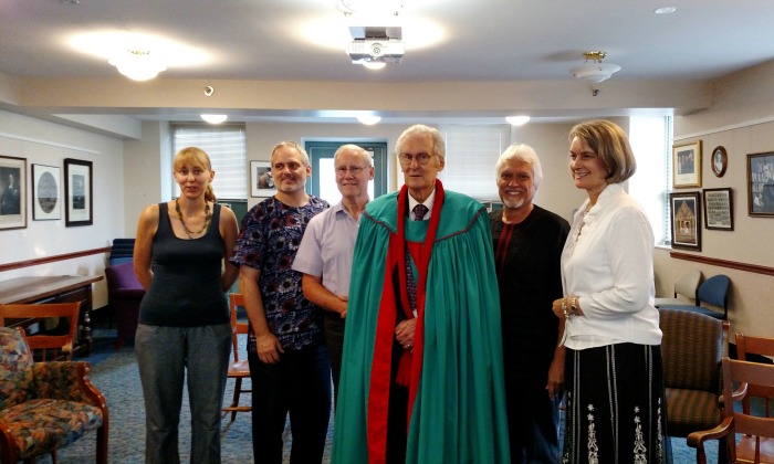 Photo: ​Bruce Yoder joins the ranks of scholars of African missiology at Boston University School of Theology on Sept 1. Pictured are Anicka Fast, doctoral student researching the Mennonite Church in Congo; Yoder; Jon Bonk, Executive Director Emeritus of the Overseas Ministries Study Center in New Haven, Connecticut, and former editor the International Bulletin of Missionary Research; Inus Daneel, retired Boston University professor and authority on African Initiated Churches; James R. Krabill, Mennonite Mission Network Senior Executive for Global Ministries; and Dana Robert, Director of Boston University’s Center for Global Christianity and Mission. Photo provided.