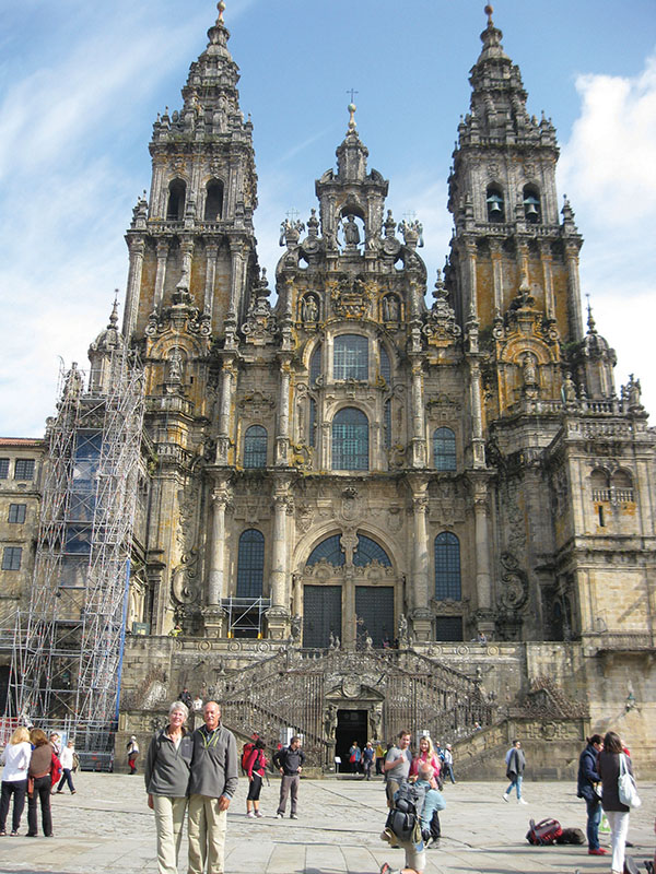 Deb and Don Schmidt at the end of their pilgrimage: the Cathedral Santiago de Compostela. Photo provided